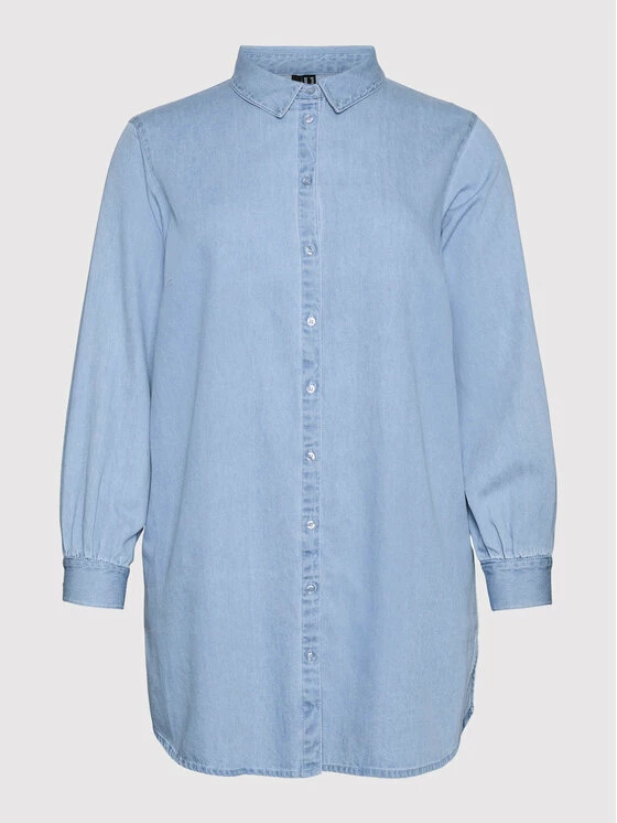 Κουπόνι 👏 Vero Moda Curve Γυναίκες Casual Πουκάμισα Τζιν πουκάμισο Lindsey 10266775 Μπλε Regular Fit 🔔