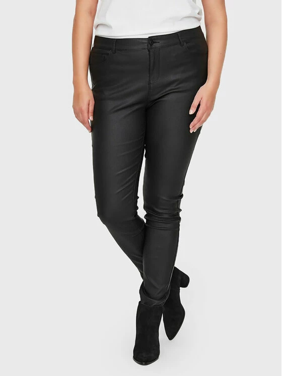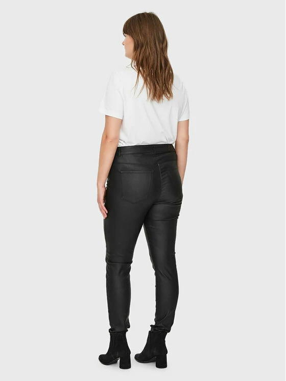 Πολύ καλή προσφορά 🌟 Vero Moda Curve Γυναίκες Δερμάτινα Παντελόνια Παντελόνι από απομίμηση δέρματος Seven 10223326 Μαύρο Slim Fit ⌛