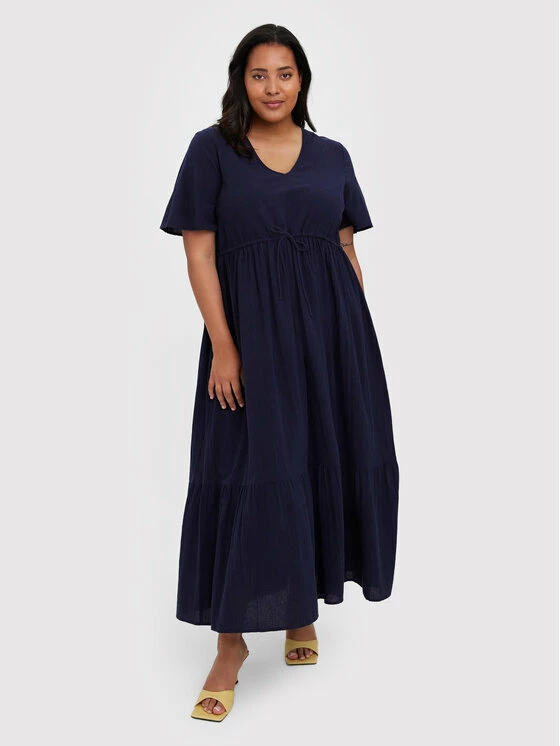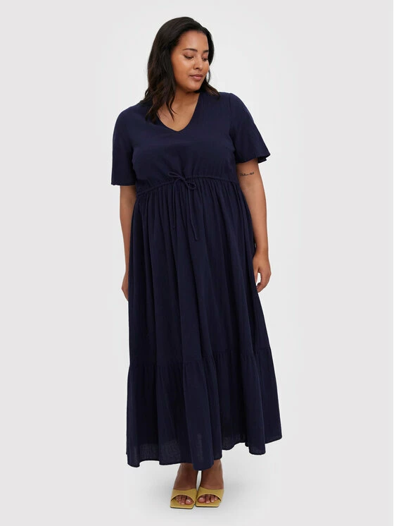Συμφωνίες ⌛ Vero Moda Curve Γυναίκες Καθημερινά Φορέματα Φόρεμα καθημερινό Mavis 10267042 Σκούρο μπλε Regular Fit 🥰
