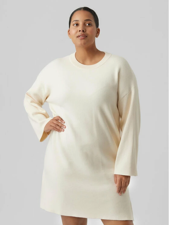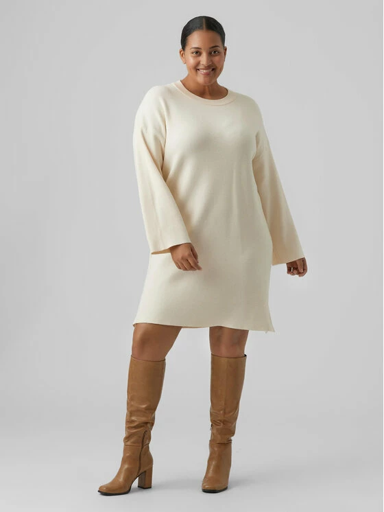 Η καλύτερη συμφωνία 👏 Vero Moda Curve Γυναίκες Πλεκτά Φορέματα Φόρεμα υφασμάτινο Gold 10279542 Μπεζ Regular Fit 💯
