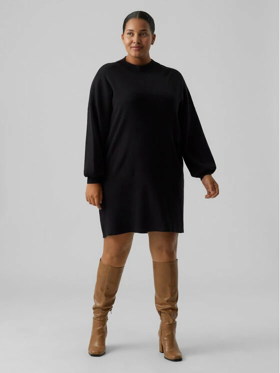 Νέος 🥰 Vero Moda Curve Γυναίκες Πλεκτά Φορέματα Φόρεμα υφασμάτινο Nancy 10276861 Μαύρο Regular Fit 🔥