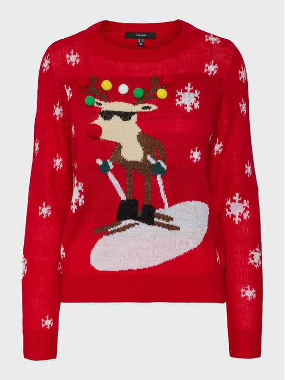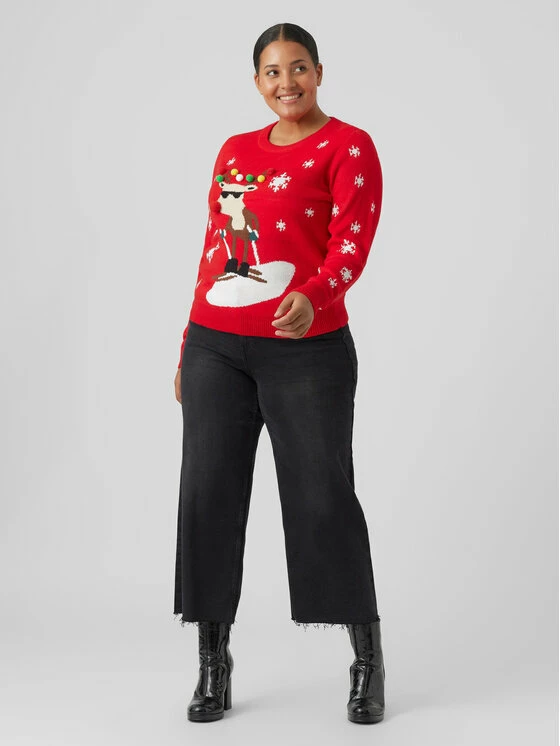 Συμφωνίες 🔥 Vero Moda Curve Γυναίκες Πουλόβερ Rudolf 10279523 Κόκκινο Relaxed Fit 💯